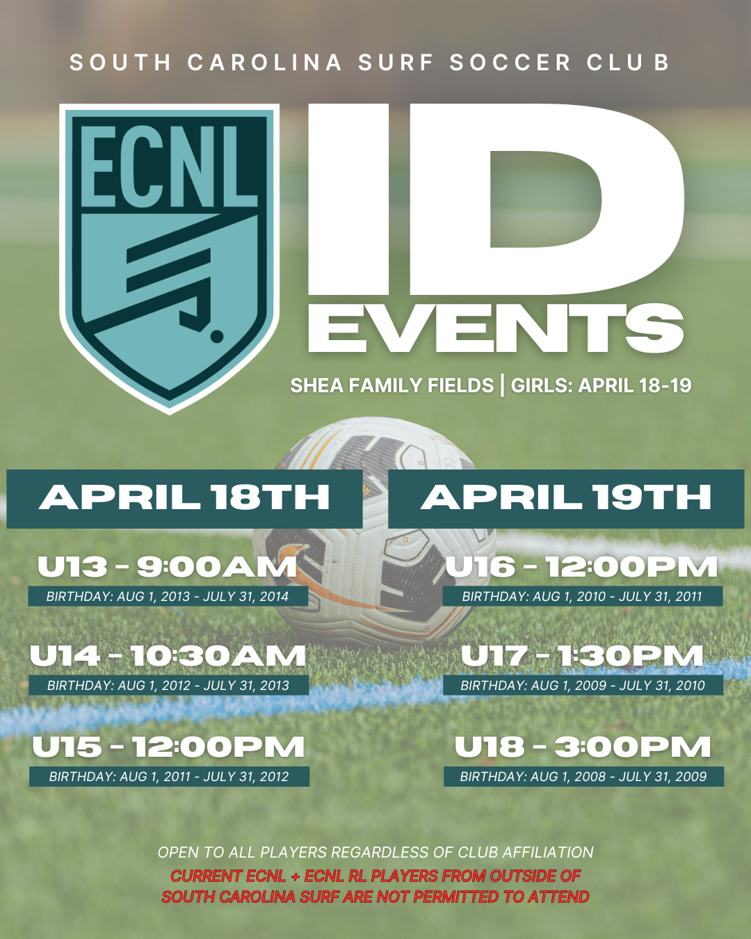 **Current ECNL + ECNL RL players from outside of South Carolina Surf are not permitted to attend.