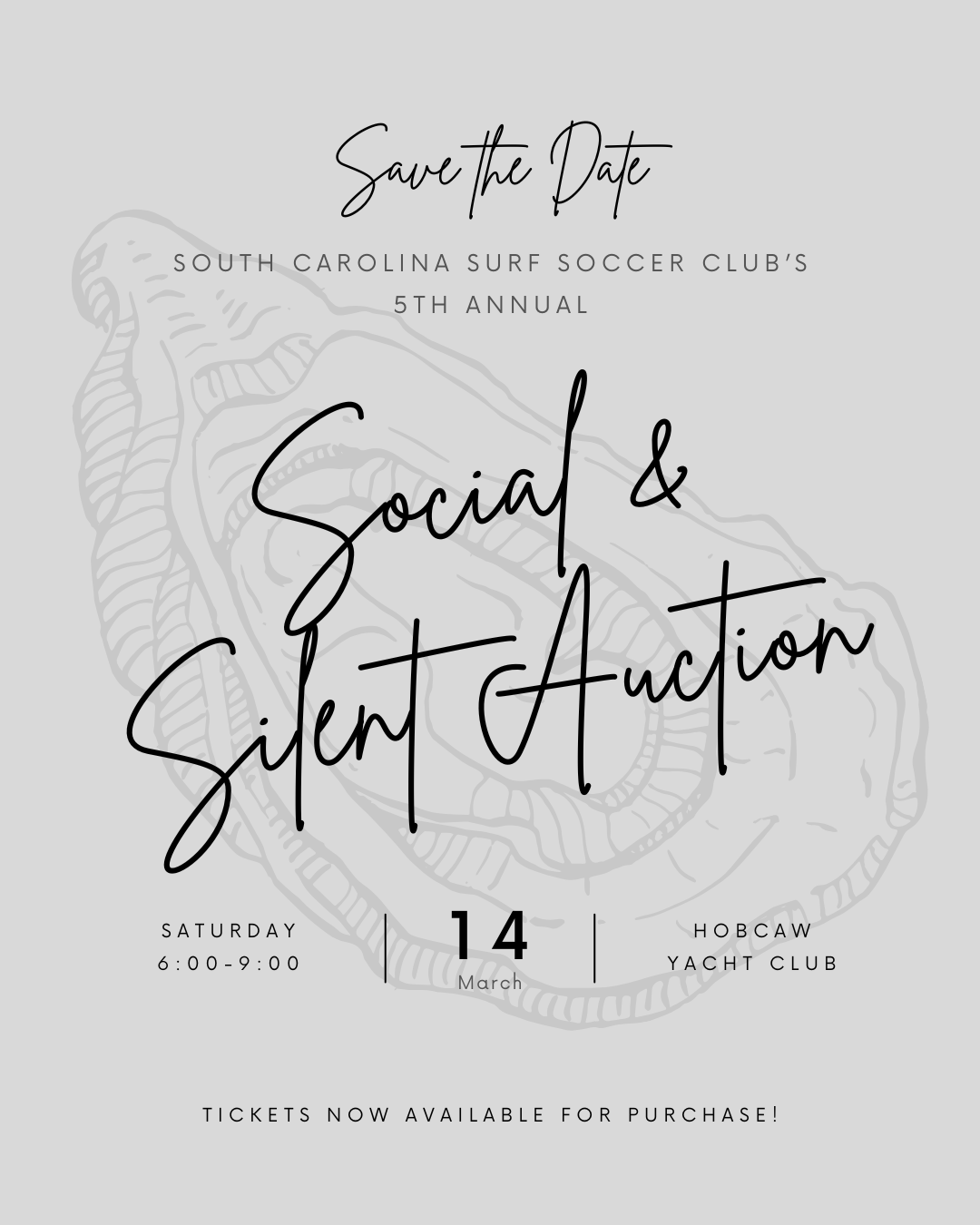 We are excited to be hosting the 5th Annual South Carolina Surf Social & Silent Auction! Please join us on March 14, 2026 from 6:00 pm to 9:00 pm at Hobcaw Yacht Club.